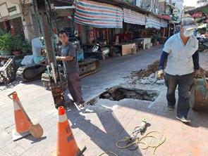 依本廠年中統計資料,金門地區114年1至6月間之總漏水率約為12.26%,雖較以前年度微幅下降,然而仍有改善空間。考量金城市區自來水管線多屬早年建置,迄今已漸老舊,再因住房密集及巷弄狹小,導致整體分佈錯綜複雜,而歷來雖未有重大事故,卻著實潛藏漏水及破管隱憂。為防患於未然,本次查漏教學再以金城市區為實施地點,包含民族路、莒光路及其周邊巷弄,於蘇隆盛老師之豐富經驗與指導下,同仁得藉由相關聽音設備,陸續尋獲多處可疑漏水點,再經開挖確認,順利完成修復工作。